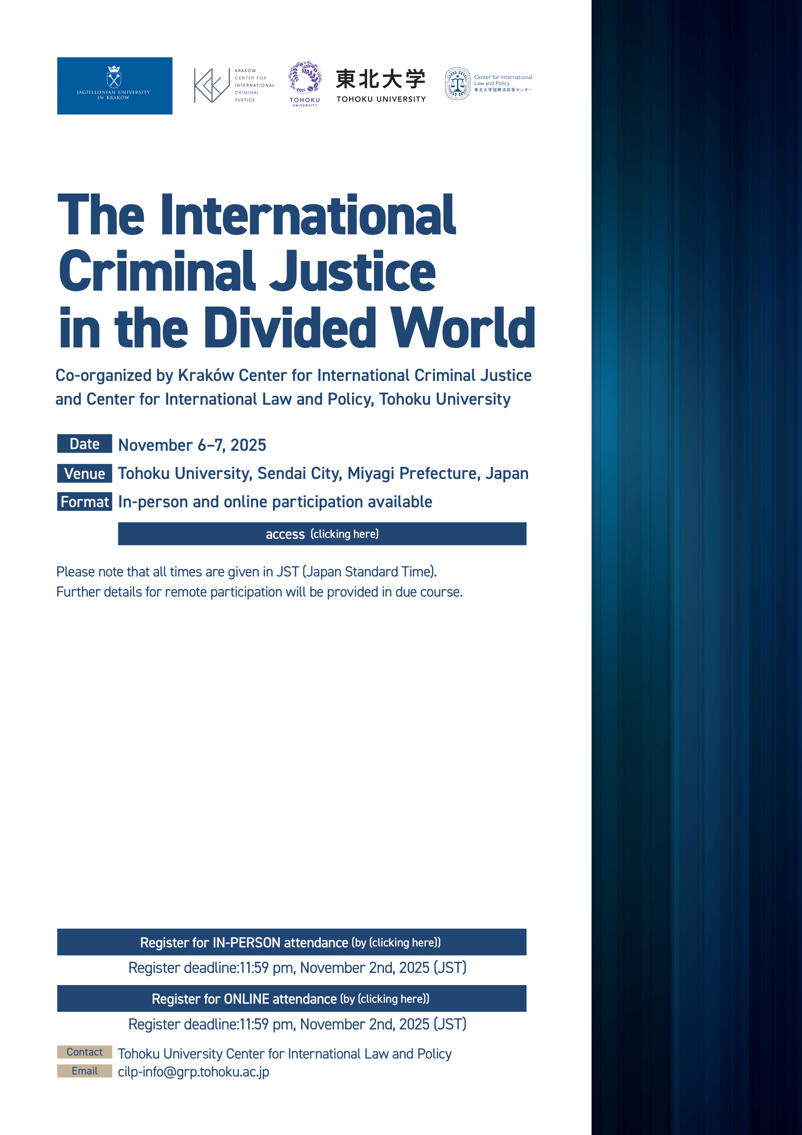 On 6–7 November 2025, Professor Paweł Wiliński, Chairman of the Foundation Sunflowers Council, will take part in the conference “The International Criminal Justice in the Divided World”, organised jointly by the Centre for International Law and Policy at Tohoku University and the Kraków Centre for International Criminal Justice at the Jagiellonian University.